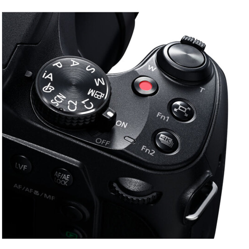 he Lumix DC Vario 60x zoom lens provides a full-frame equivalence of 20-1200mm, ensuring versatility and range. When shooting at higher focal lengths, POWER O.I.S. image stabilization counteracts image blur resulting from camera shake and helps produce sharper overall images. You have the option of shooting through the glare-resistant 2.36m-dot OLED LVF or with the 3.0" 1.84m-dot TFT LCD monitor, depending upon your situation. Record precise 4K Full HD video and extract photos from the footage to save as 8MP equivalent still images.