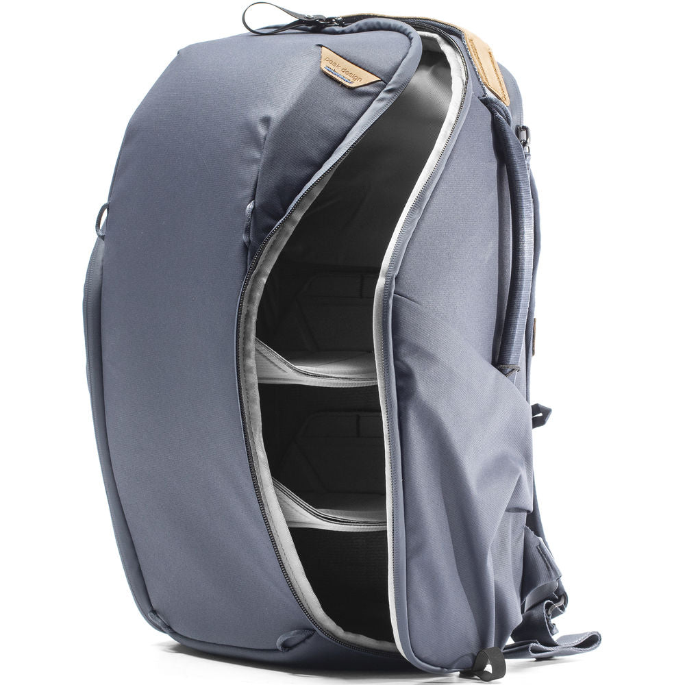 The 20L Everyday Backpack Zip from Peak Design is a versatile, light-duty bag for photographers or multimedia creators, and can serve as a stylish way to carry any personal items that can be placed within it. Complete access to the main compartment is enabled by a zippered, clamshell opening. The zipper travels up both sides of the Everyday Backpack Zip and angles toward the wearer at the top of the bag. Even when partially opened, this angled zipper allows the main compartment to be easily reached whether through the top, or along either side of the Everyday Backpack Zip. Two adjustable dividers allow items to be stacked within the main compartment. The dividers feature foldout surfaces that can be configured to cushion and hold items against the sides of the bag, providing the ability to ensure which items can be most quickly accessed when the Everyday Backpack Zip is rotated from one's back to front with either side facing upward.