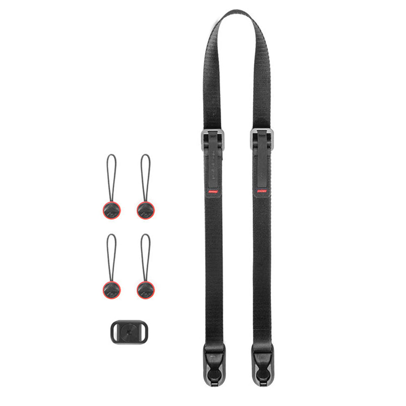 The Leash features twist-resistant nylon webbing. Additionally, it can be worn as a cross-body strap across a right or left-handed user's body, draped from one shoulder to the opposing hip. When used along with an Anchor Link, the included Peak Design Anchor Mount can create a connection point using a camera's 1/4"-20 bottom accessory thread. By attaching the Leash along a bottom accessory thread and one strap eyelet instead of two, a camera can be made to consistently face forward while against the hip, reducing the time needed by the user to raise it to their eye and capture an image.