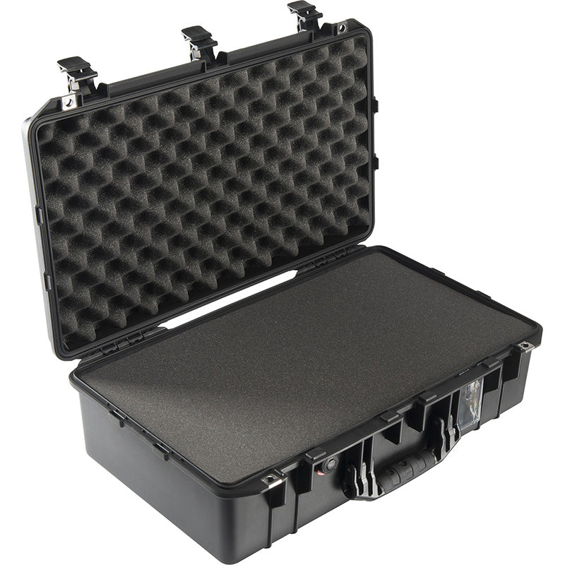 Combining strength and lightness, the black Pelican 1555Air Carry-On Case with Pick-N-Pluck Foam is watertight, crushproof, dustproof, and optimized for travel. For travel by air, Pelican has aggregated available airline rules for maximum overhead and check-in dimensions, with the goal of creating a case that conforms to their requirements. Of course, it is always recommended to contact your carrier before departing.