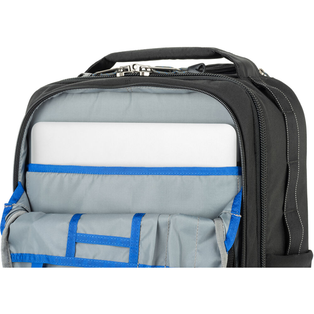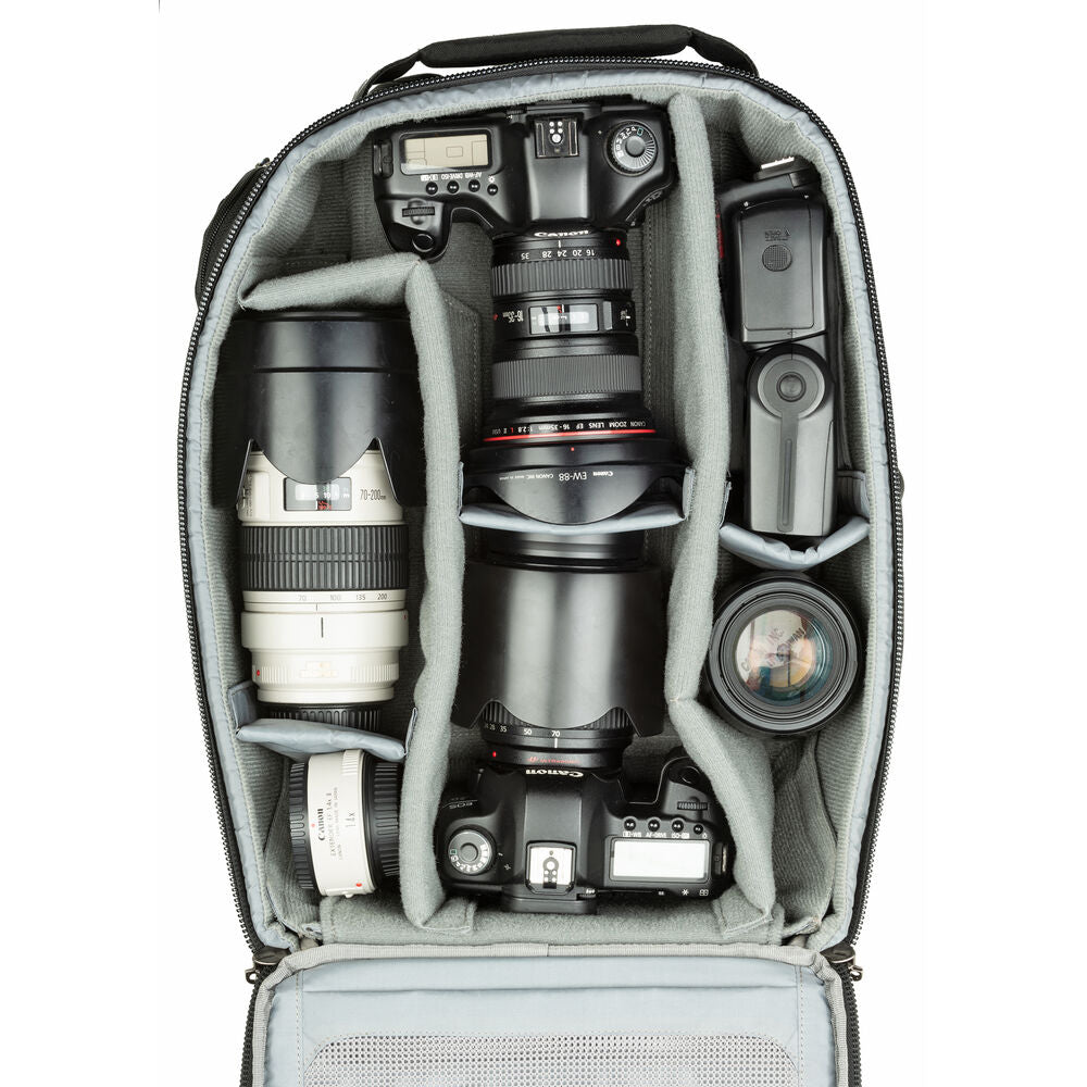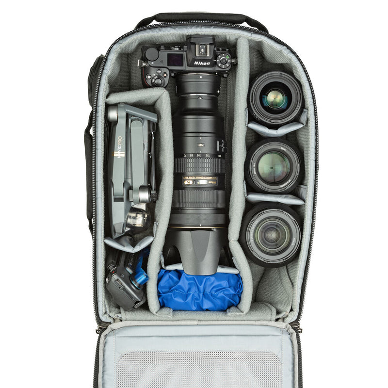 Roll smoothly through the airport then deploy the backpack straps to carry over rough terrain. Sized to meet most airline carry-on requirements*, the Essentials fits two DSLR or Mirrorless bodies, a mounted 70–200mm, multiple lenses, and a 16-inch laptop. And because it’s from Think Tank, the bag will roll long into the future.