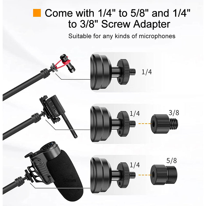 - Suitable for Camera, smartphone (phone holder), microphone, video light, accessories universal 1/4″ screw connection