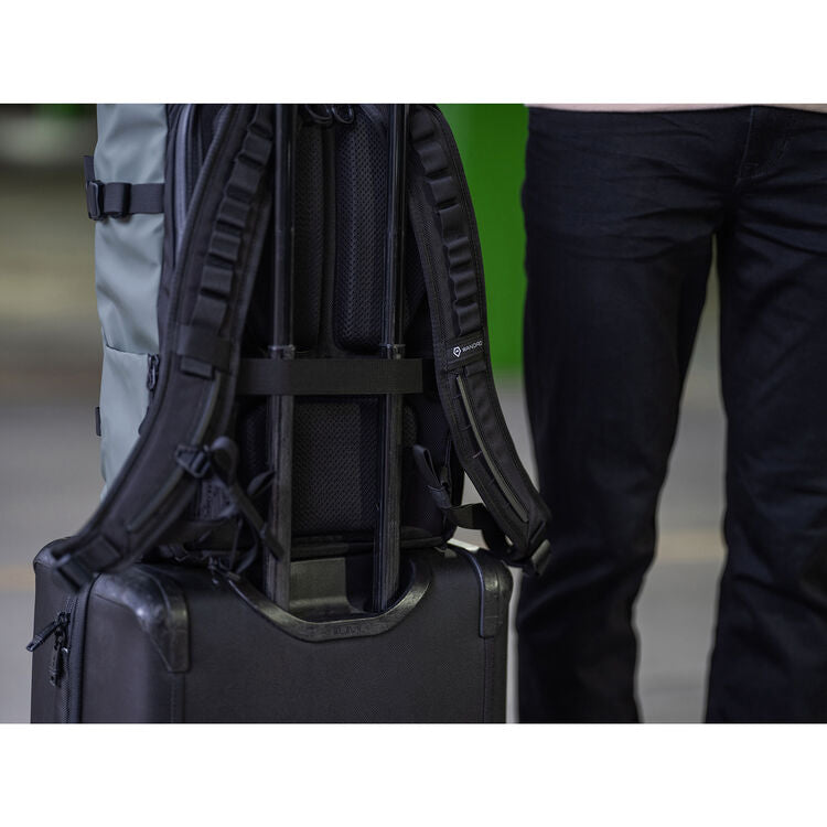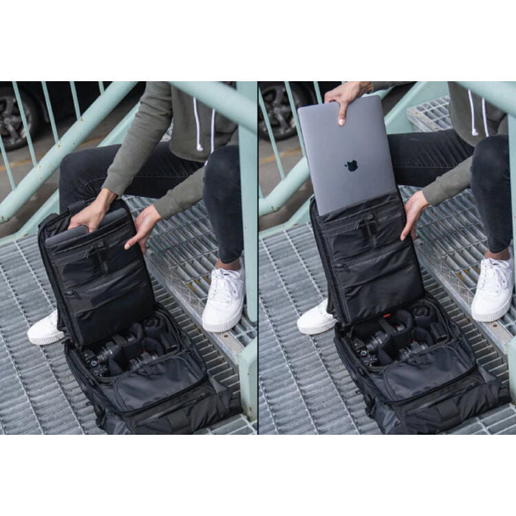 The all new WANDRD PRVKE 41 comes with a robust WANDRD Essential Cube. The pack is designed to hold a variety of photo and personal gear. For weather protection, it has a rolltop closure, weather-resistant YKK zippers, and is constructed from water-resistant tarpaulin and nylon dobby. The pack can accommodate a 15" MacBook Pro laptop, and there's an RFID pocket for your passport, a side pocket with a key hook, and a fleece-lined phone pocket.